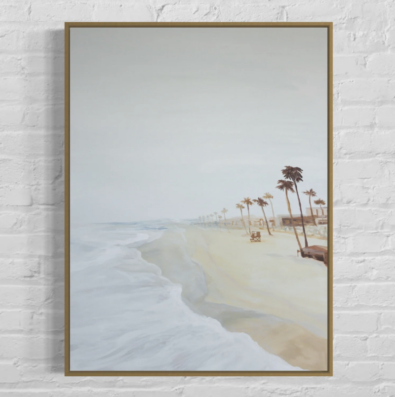 Ali works primarily in acrylic, blending fluid brushstrokes, seamless color transitions, and intuitive mark-making to capture both the energy and the calm of California’s coastline. Her painterly style is often described as what one might see when one squints and takes in a scene all at once, evoking a softened memory shaped by light, movement, and mood. Each piece carries an immersive quality, inviting viewers to pause and reconnect with their inner landscapes and the natural world.
